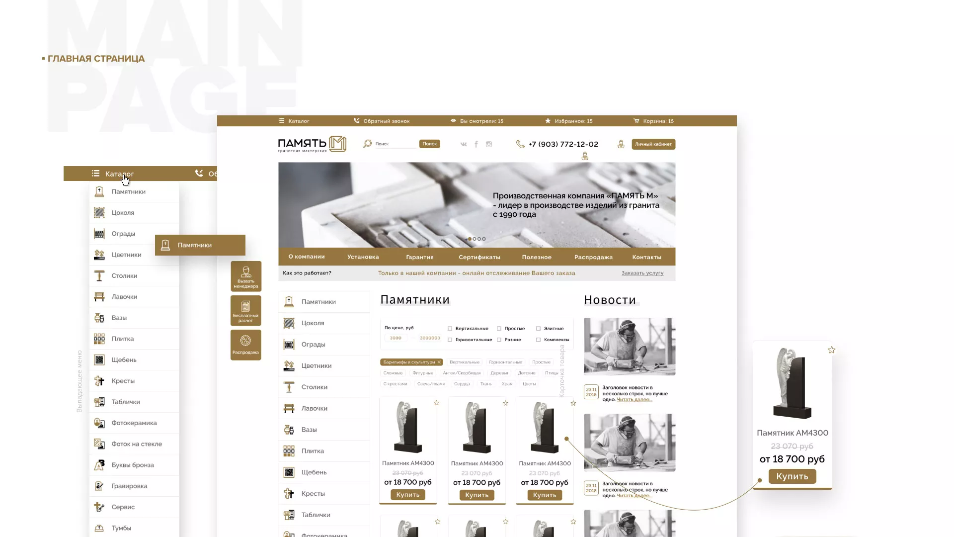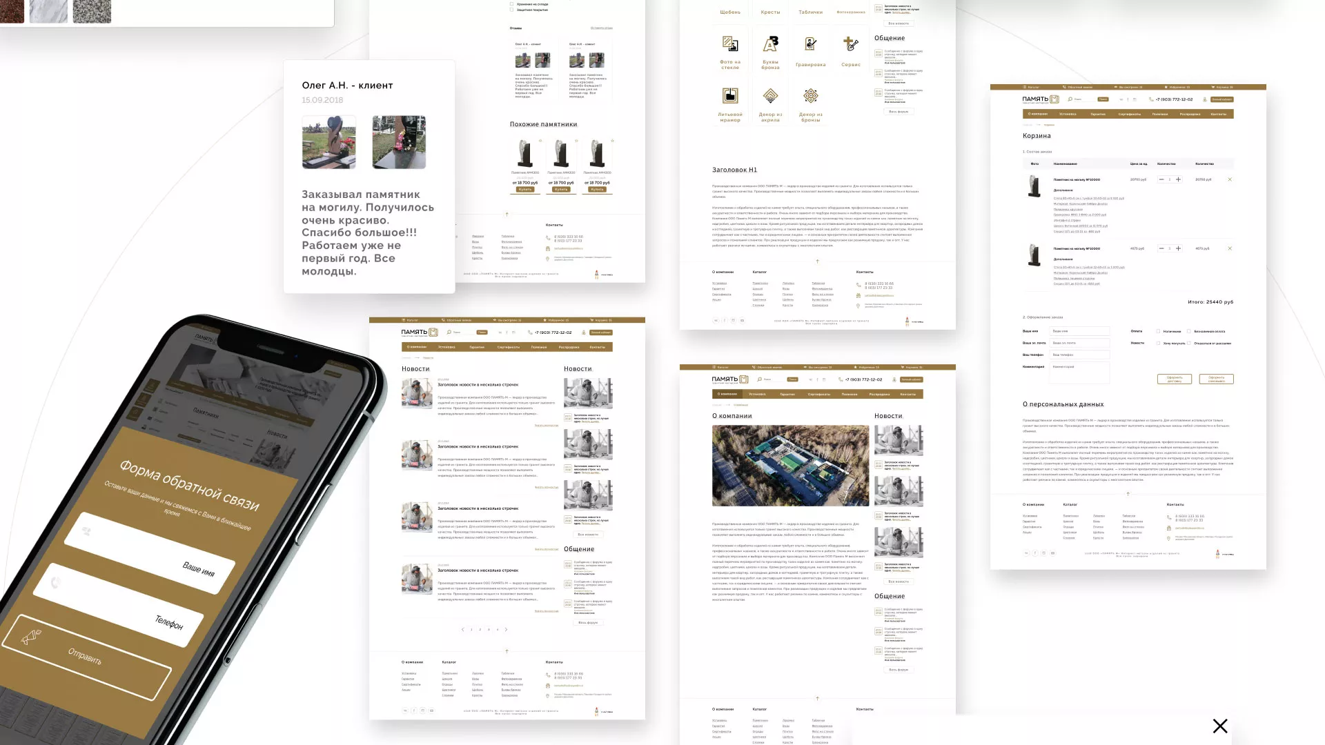 Разработка логотипа, фирменного стиля и сайта в Суворове для компании «Память-М». Компания является предприятием по изготовлению всех видов надгробных сооружений: памятников, цоколей на могилу, оградок, столов, лавочек, ваз, балясин, плитки, мемориальных комплексов. Компании «Память-М» изготавливает все виды мемориальных изделий на собственном производстве в Суворове.