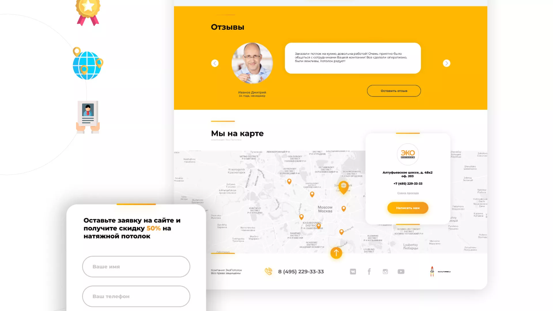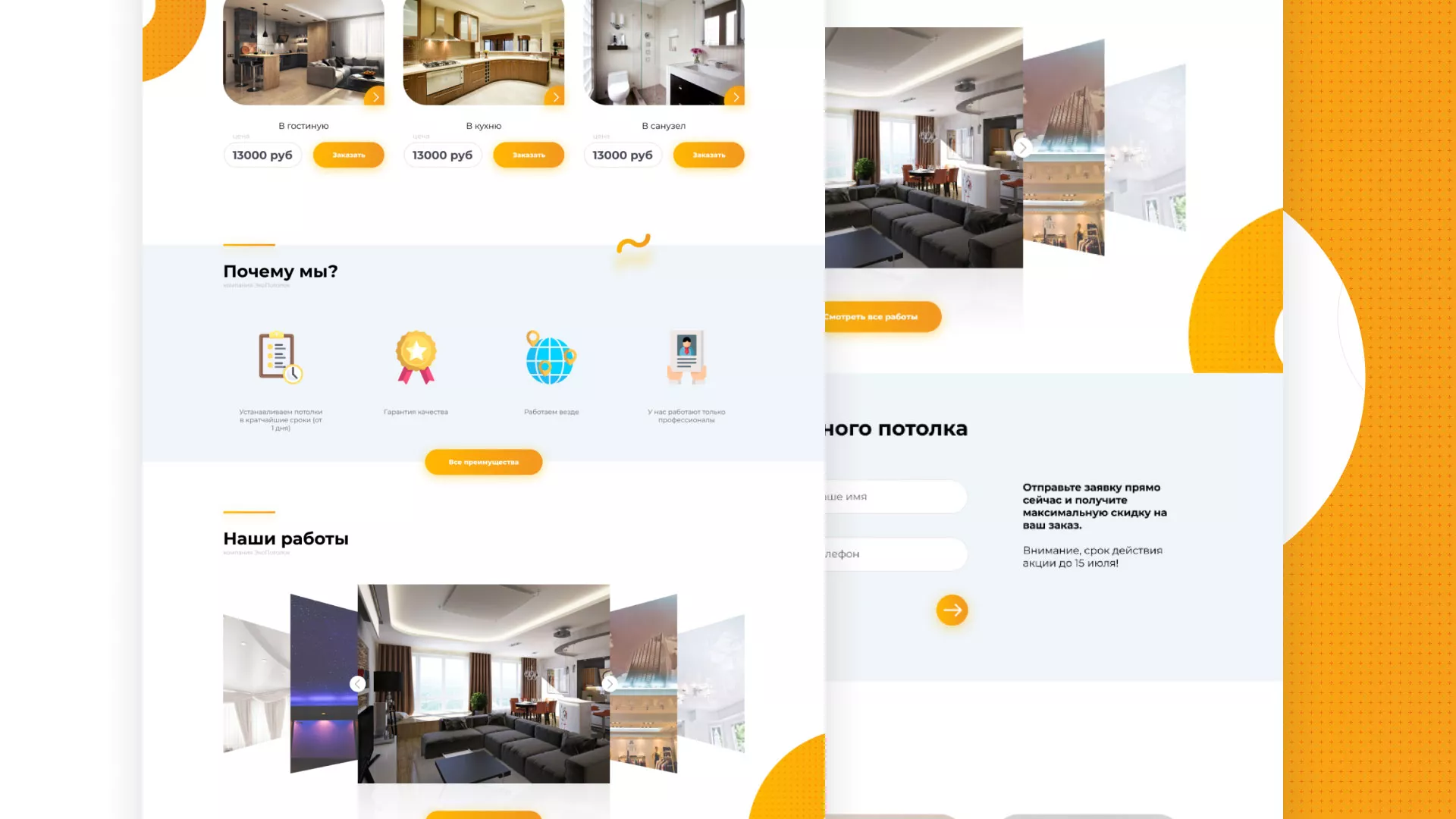 Вам нужна разработка сайта по натяжным потолкам в Суворове? Специалисты компании «Мультзавод» готовы помочь! Мы предлагаем большой выбор уже готовых вариантов, а также можем создать и что-нибудь новое!